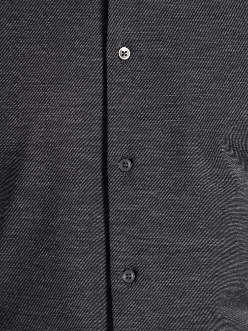 Camisa de hombre en tejido TECNO gris efecto melange con cuello semidesplegado. Práctica, transpirable y sin plancha.