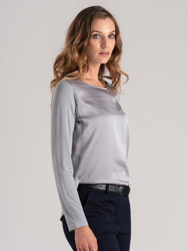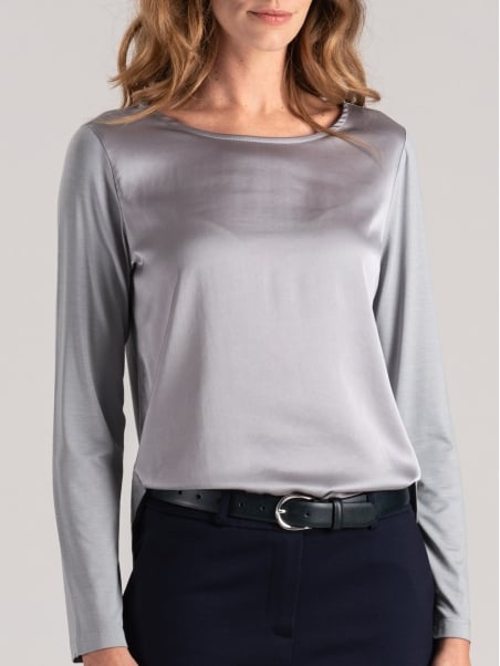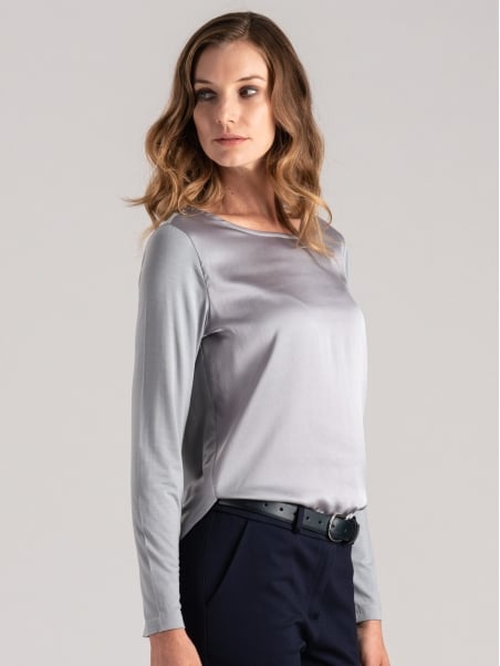 Blusa donna manica lunga in satin e jersey