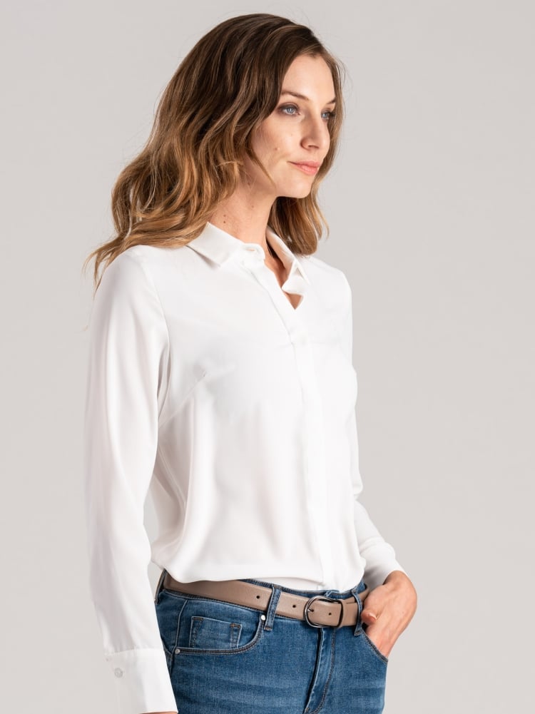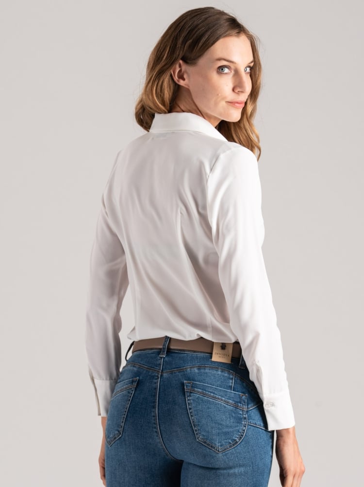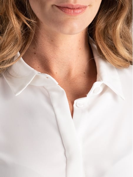 Camicia donna classica con pinces e vestibilità fluida, in tessuto tecnico.