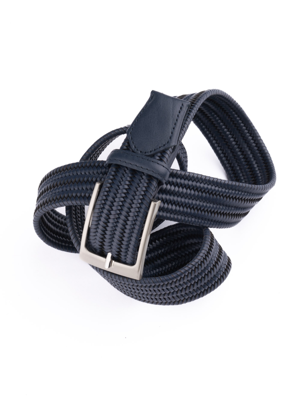 Cinturón trenzado de caballero de cuero liso elástico con puntera de cuero.