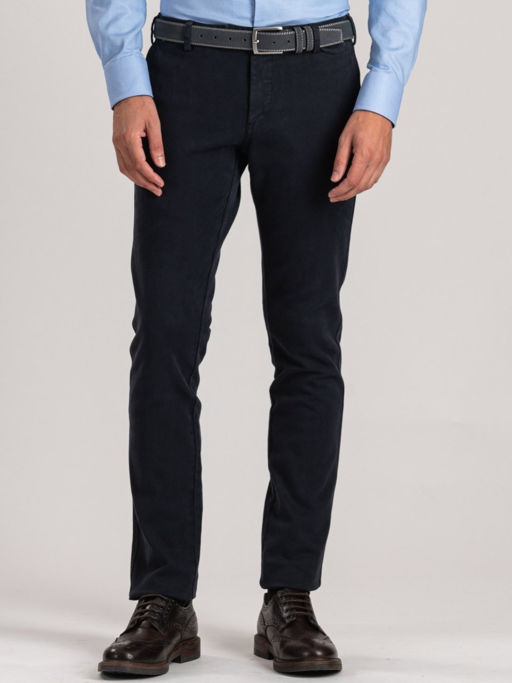 Pantalón de gabardina de algodón para hombre de mano cálida, perfecto para un estilo informal pero arreglado. Tiene bolsillos traseros con solapa y una doble costura estilo vaquero en los bolsillos delanteros, que acentúan su carácter informal. El cinturón interior está rematado con cinta de jacquard en contraste. Una prenda práctica y versátil, ideal para el tiempo libre o para un look relajado pero de calidad.