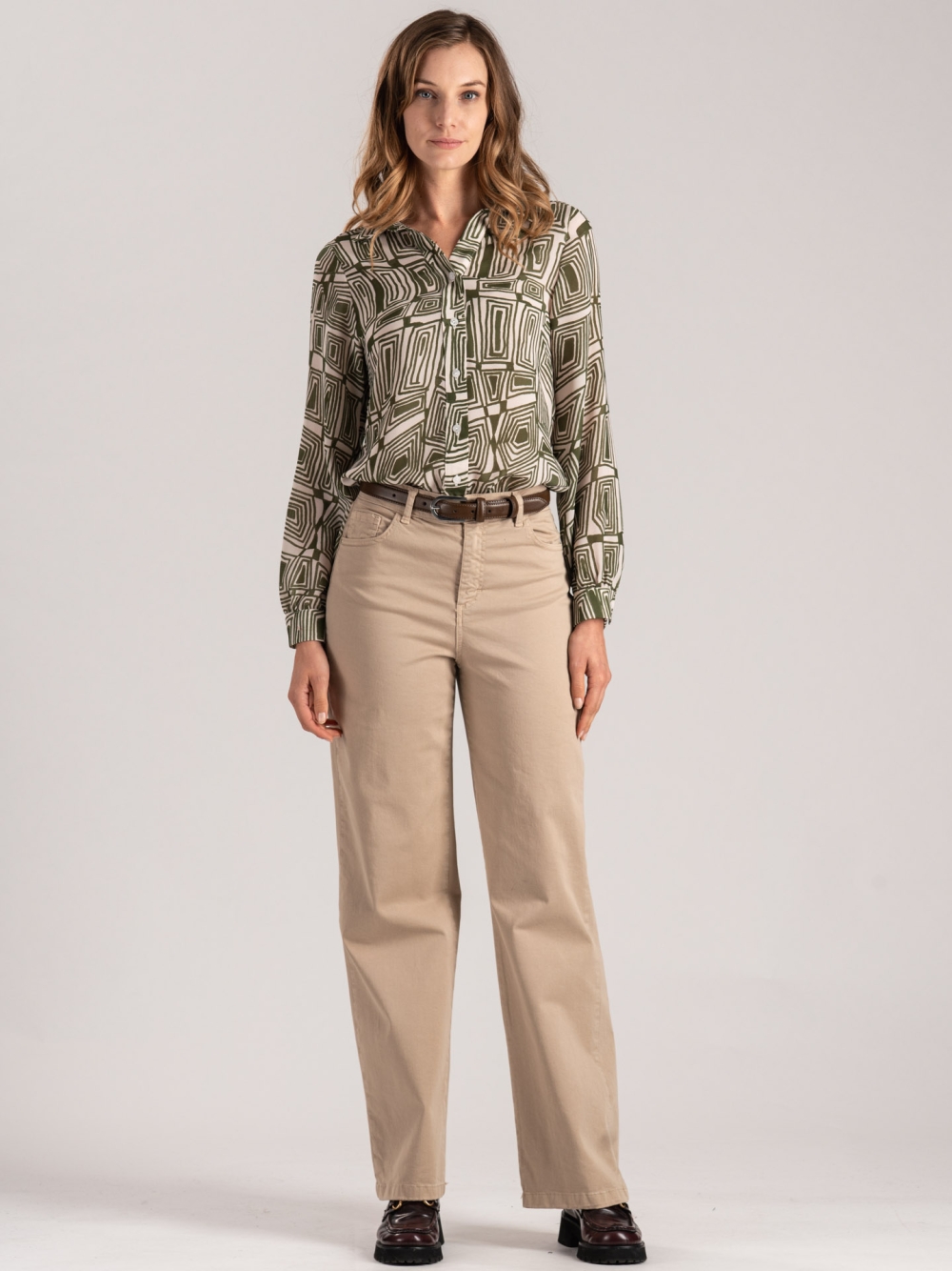 Pantalón de mujer de corte cómodo y pierna recta, con un diseño de 5 bolsillos y cintura media que favorece la silueta de forma natural. Confeccionado en tejido teñido en prenda, se presenta en dos versátiles tonos: marrón oscuro y arena. Su corte amplio pero esencial lo convierte en una prenda ideal para un look casual contemporáneo.