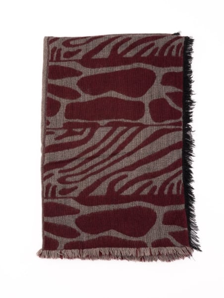 Bufanda doble de mujer con ramaje, ligeramente deshilachada.