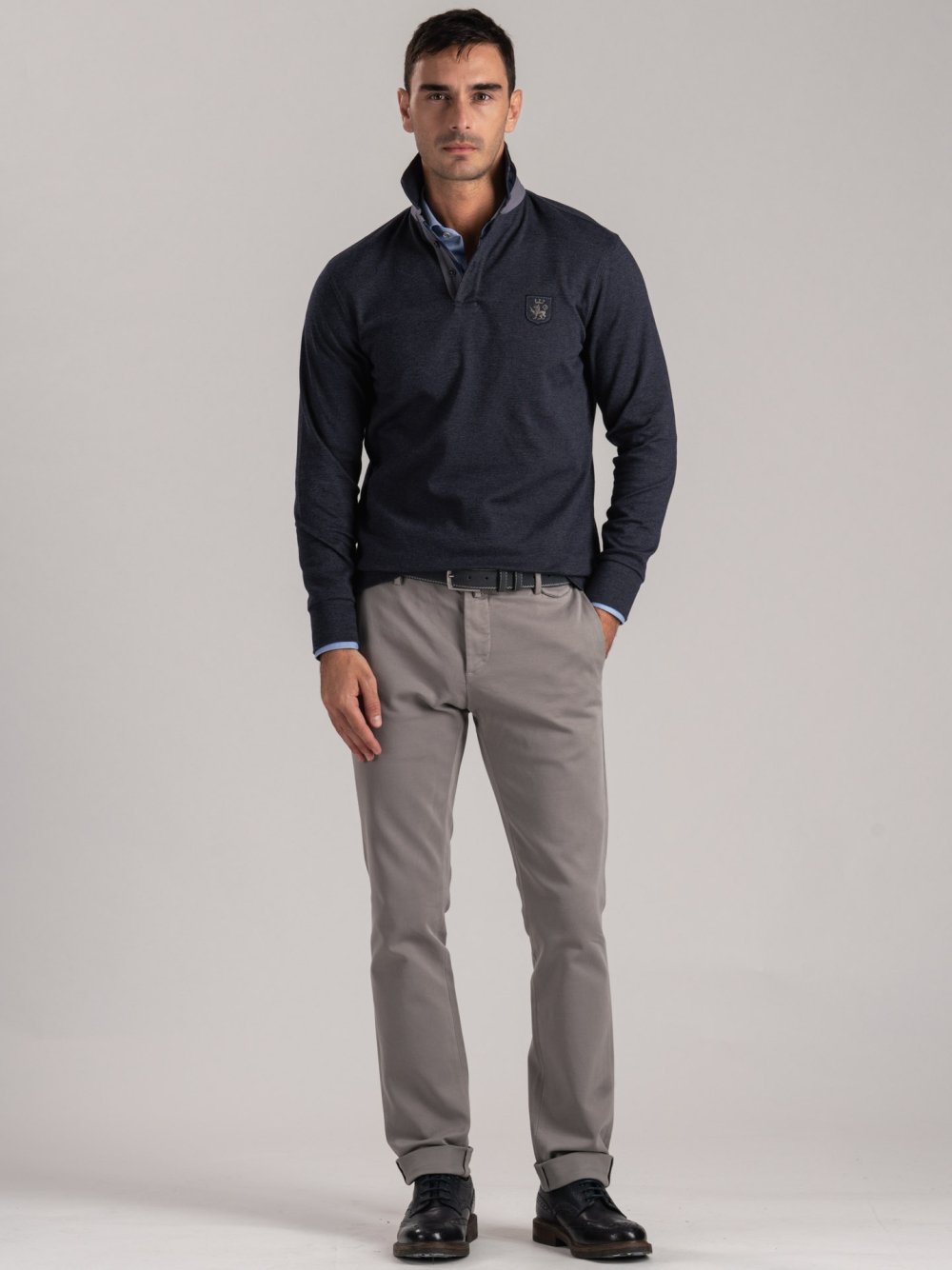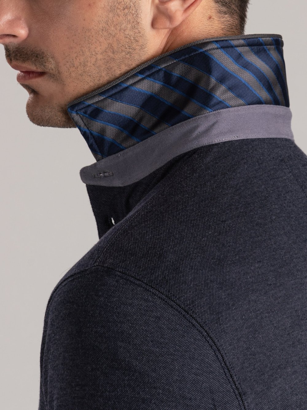 Polo de manga larga para hombre en piqué técnico con detalles de corbata del regimiento y contrastes tono sobre tono.