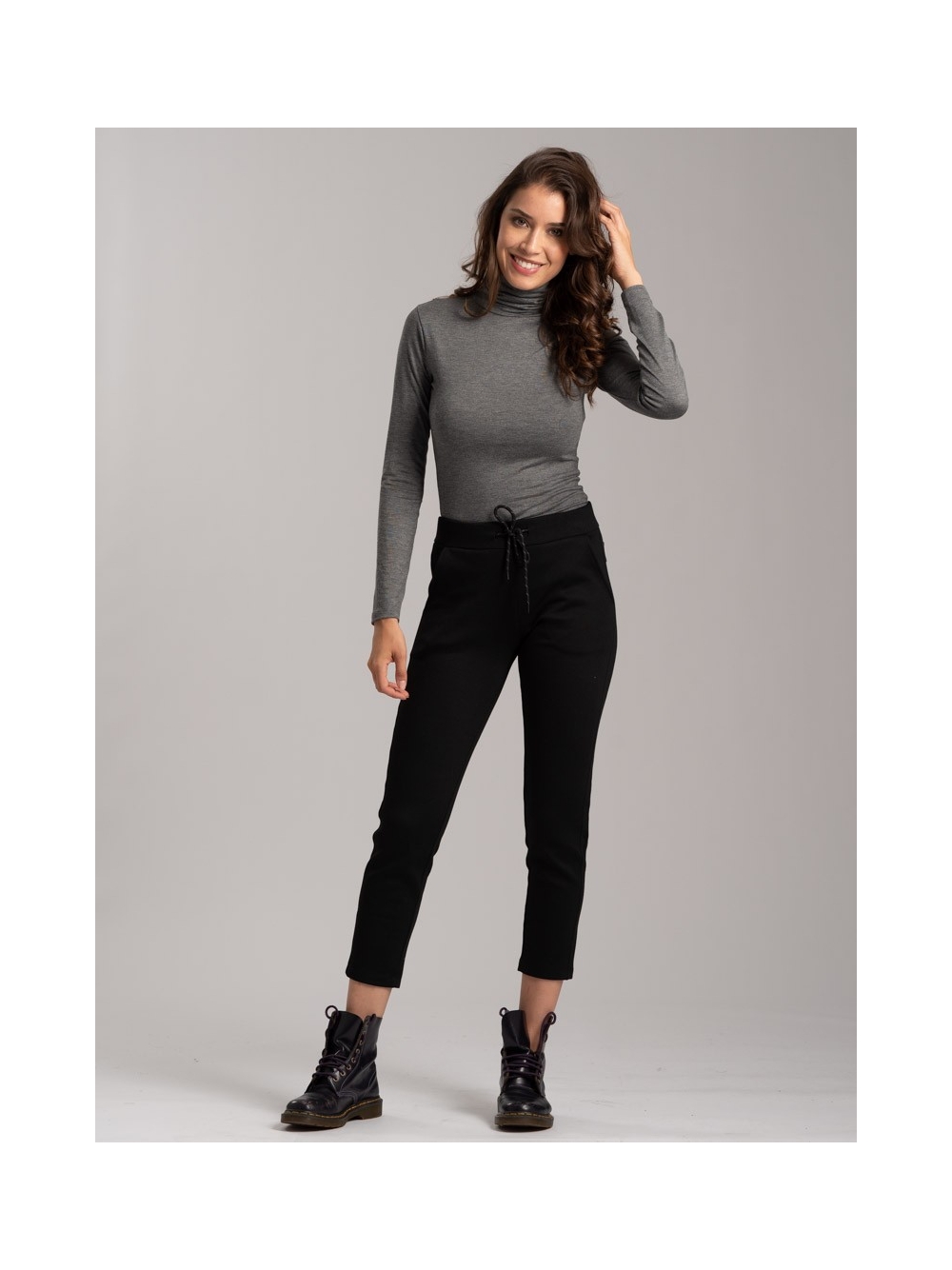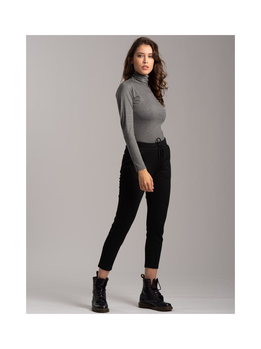 Pantalón de mujer confeccionado en tejido técnico bicolor (Scuba) con cremalleras invisibles, ocultas en los cortes ergonómicos de las prendas.