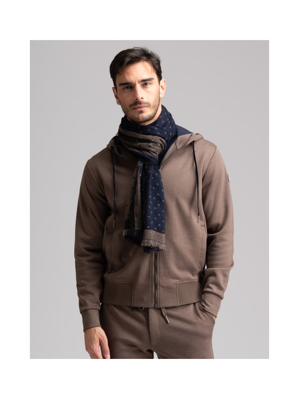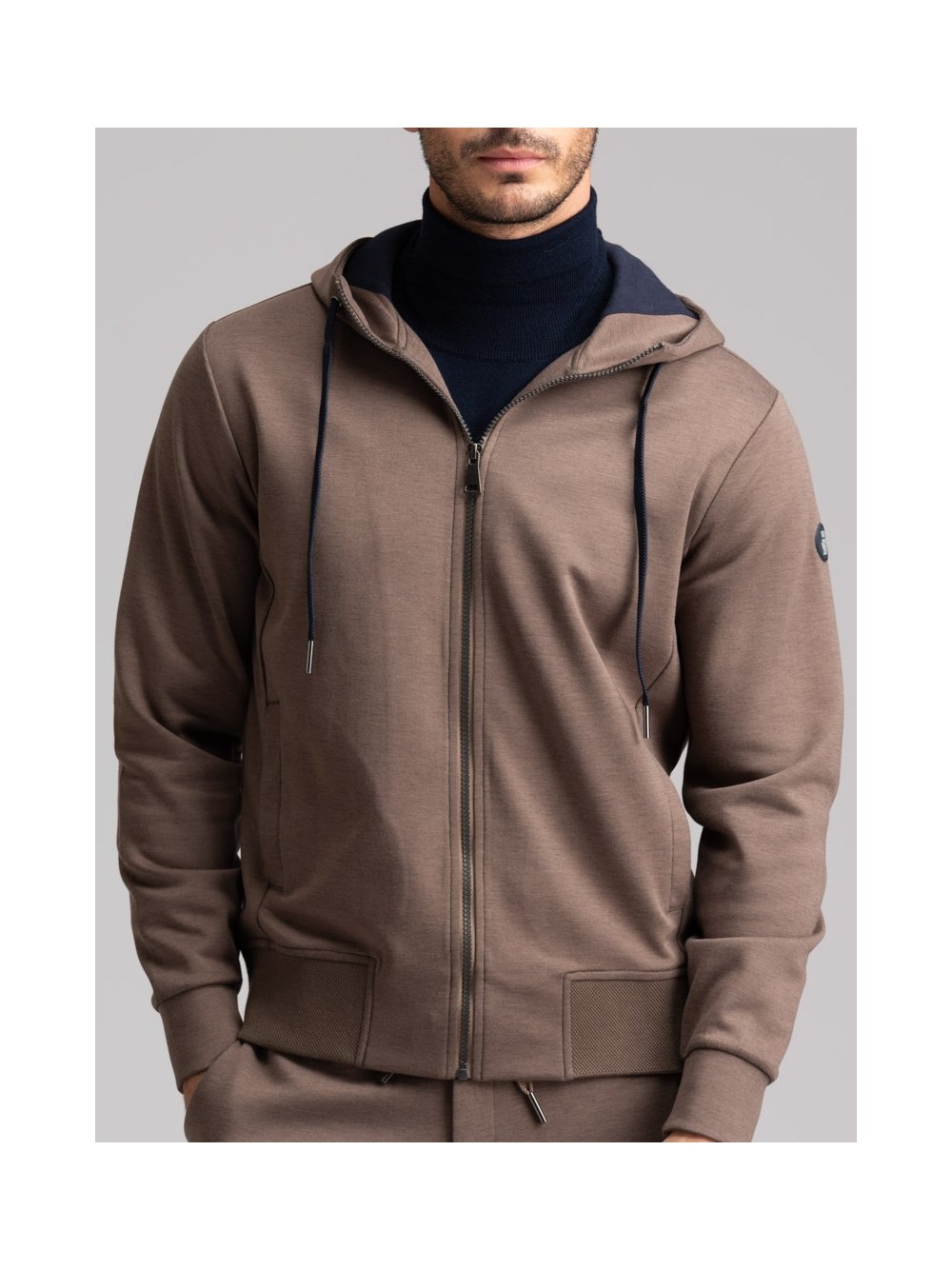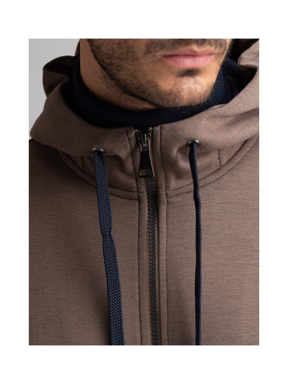 Sudadera de hombre con cremallera completa, capucha, bolsillos, dobladillo inferior en tejido de nido de abeja e interior en contraste, confeccionada en tejido técnico Scuba.