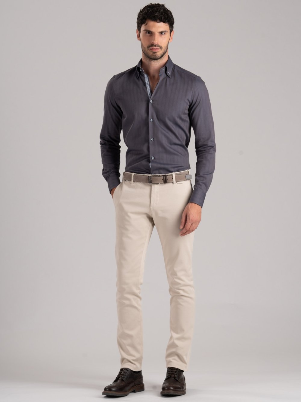 Camicia uomo spina di pesce grigia collo button down