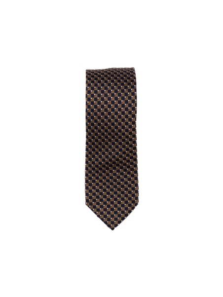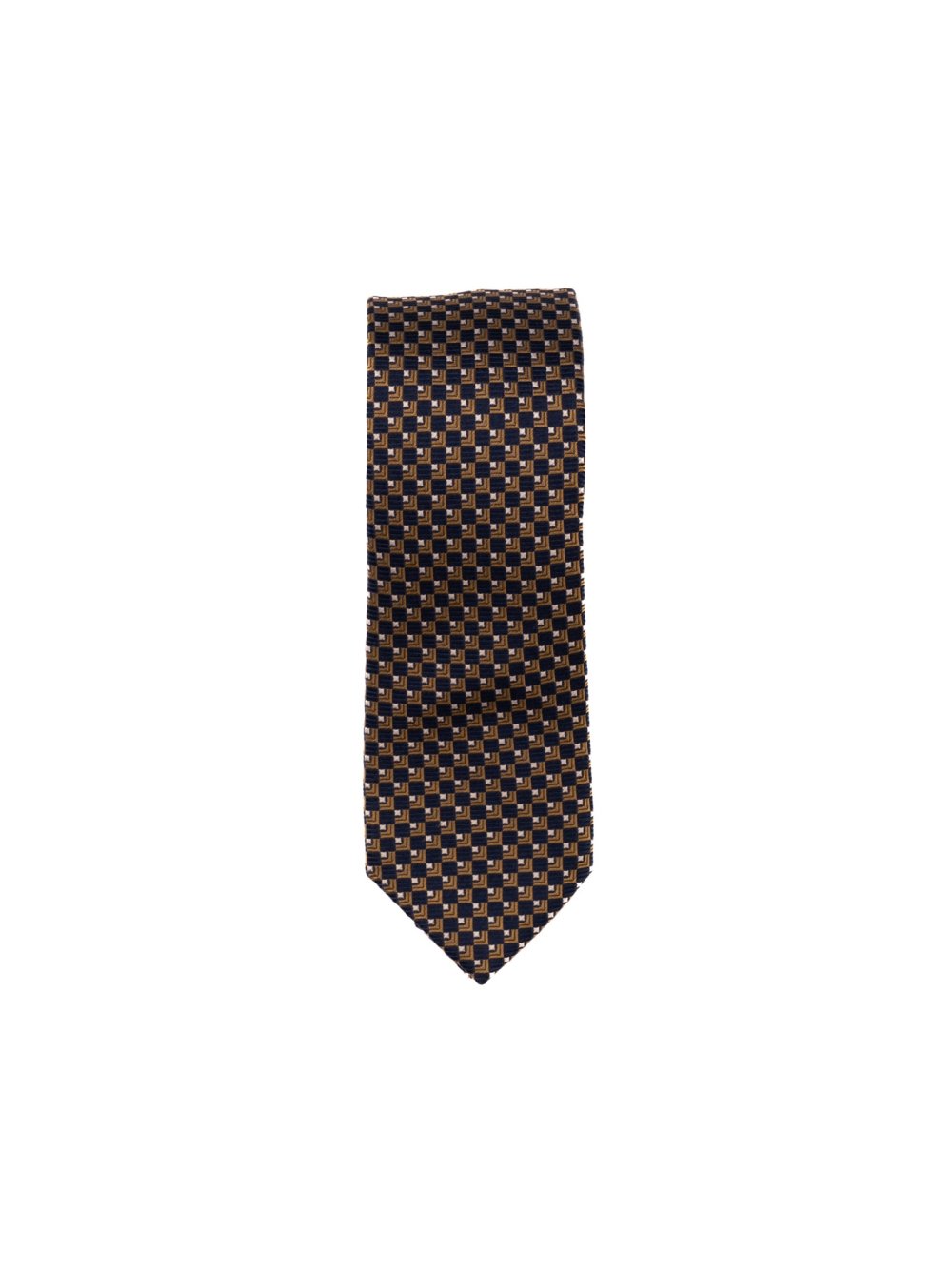 Cravatta in seta armaturata con pala media e disegno a rombi nei toni blu, senape e sabbia. La lavorazione aggiunge profondità alla fantasia geometrica, valorizzando abbinamenti classici e contemporanei.