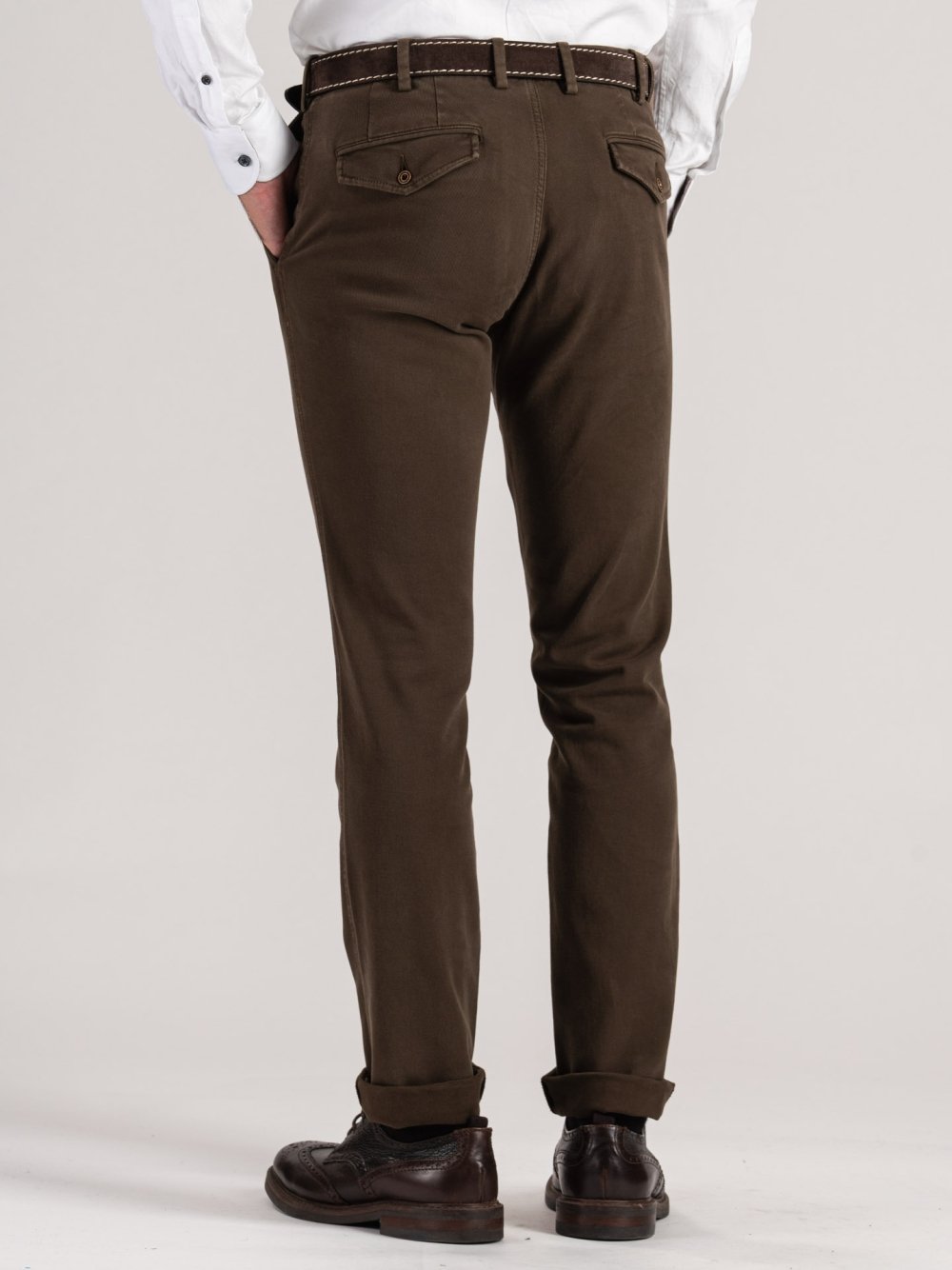 Pantalone uomo in gabardina di cotone con tasche posteriori con alette e impuntura a jeans.