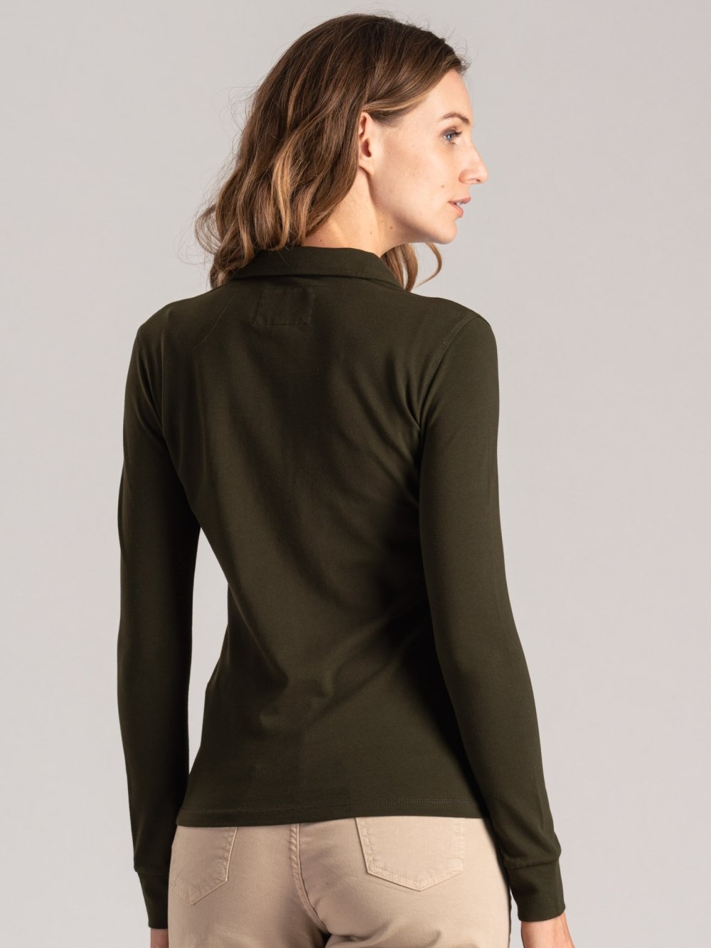 Polo donna realizzata in cotone piquet stretch per una vestibilità comoda e femminile. Il modello è impreziosito da micro bottoni araldici in galvanica canna di fucile, tasche applicate con patella e ricamo tono su tono del logo INVIDIA 1973. Il polsino in maglia e la lunetta interna al collo assicurano comfort e struttura.