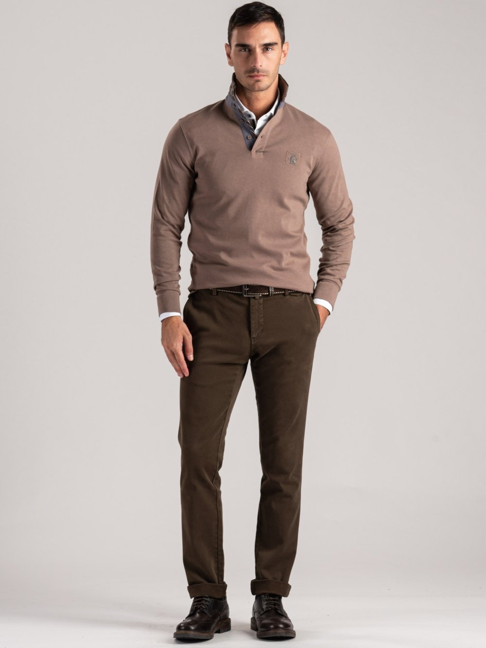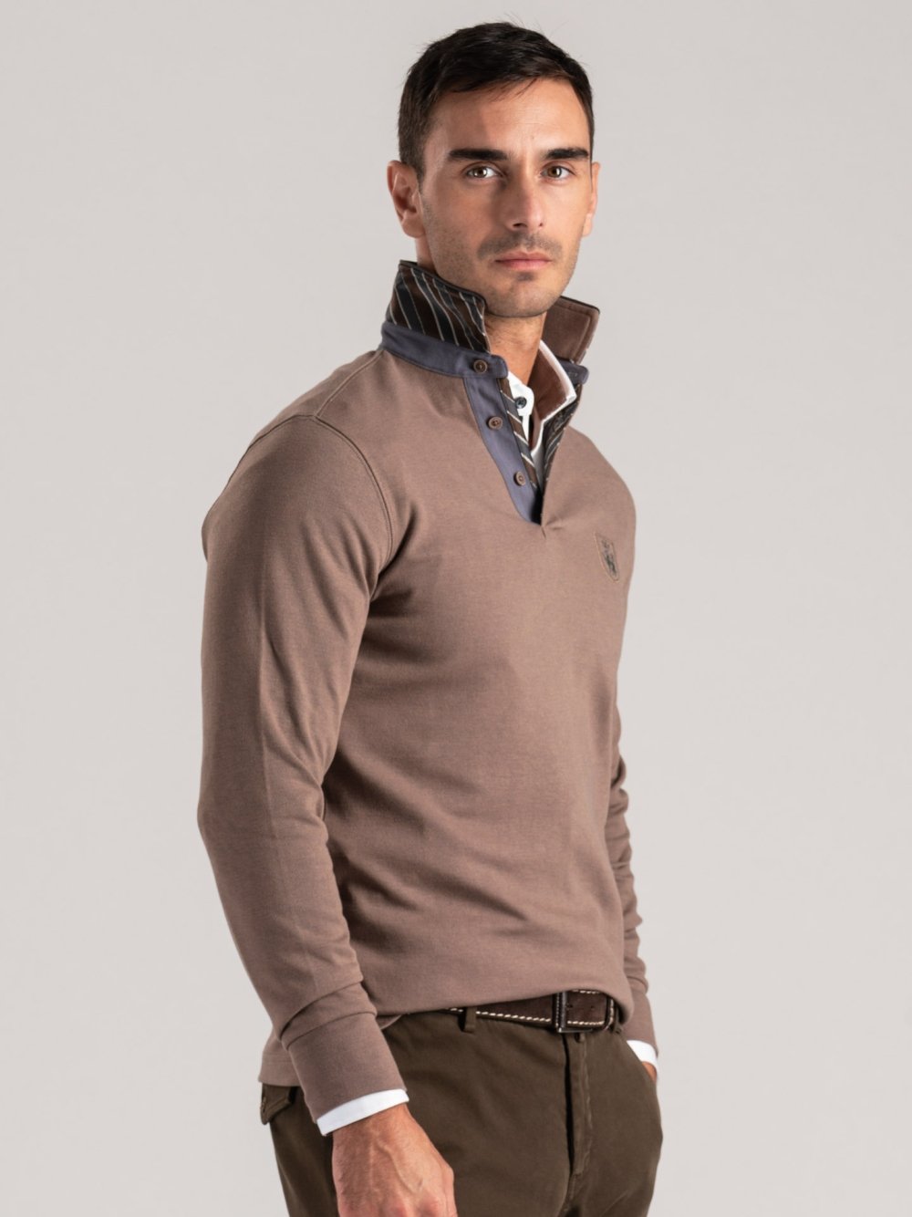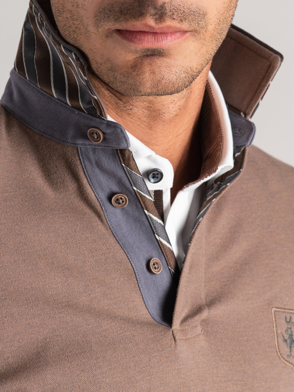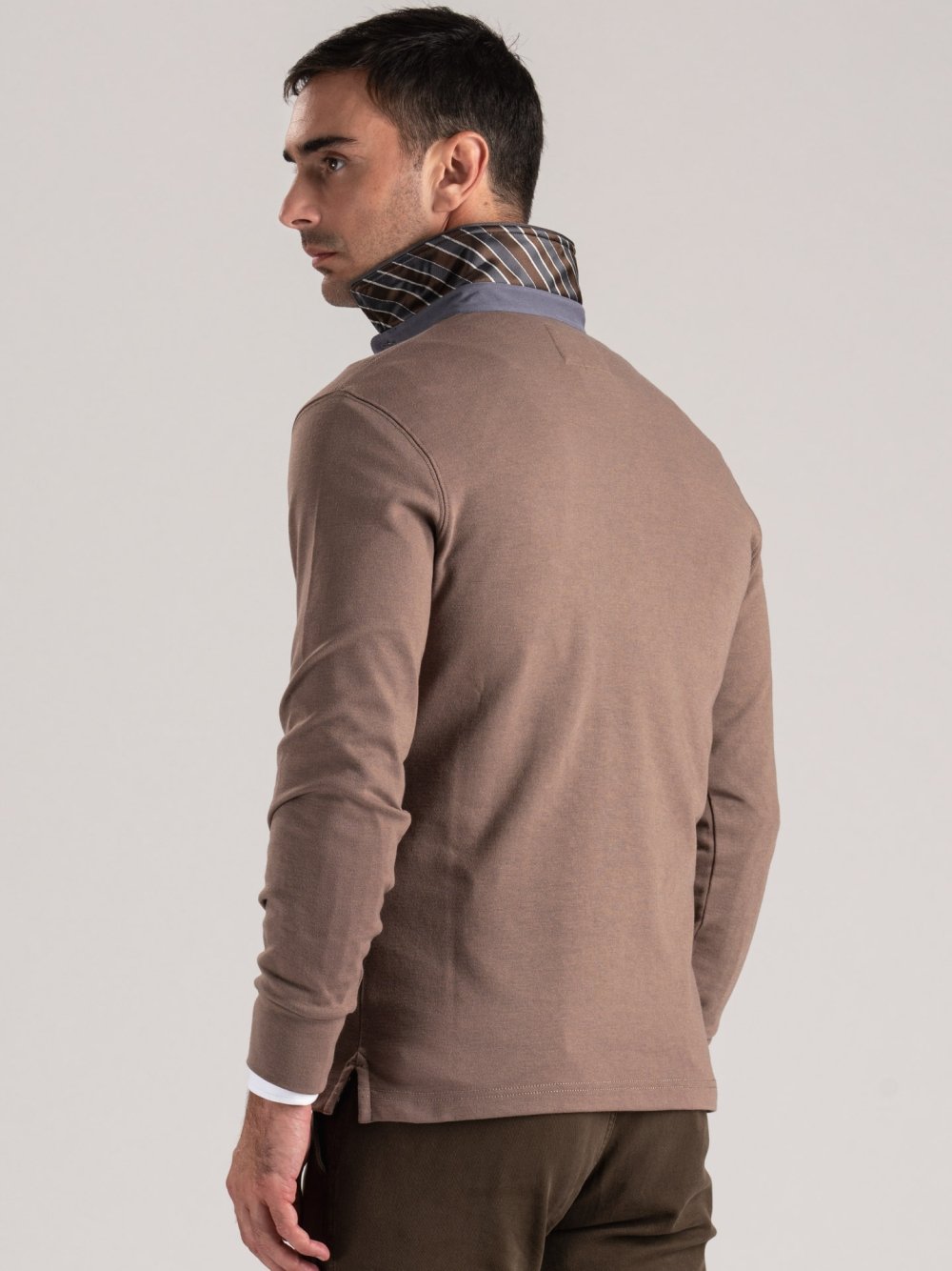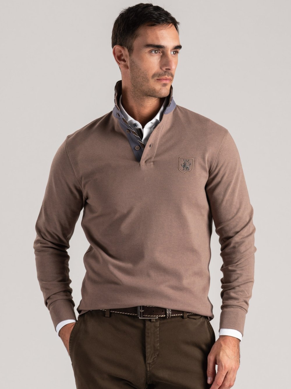 Polo uomo manica lunga in piquet tecnico con dettagli in tessuto cravatteria regimental e contrasti tono su tono.