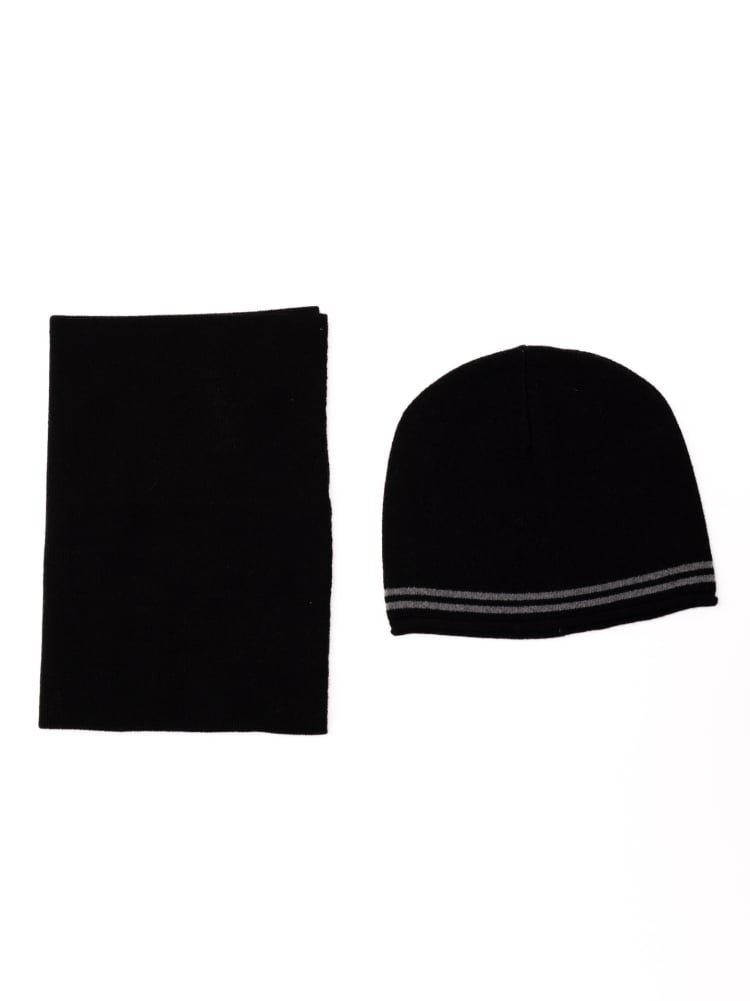 Sciarpa uomo ad anello in maglia finezza 12, nelle varianti verde militare, avio e nero. Coordinata al cappellino abbinato.